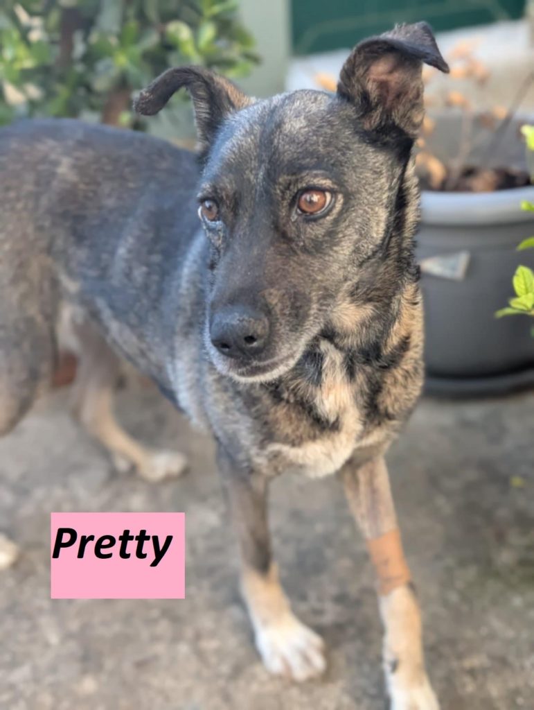 Η Pretty, βρέθηκε σε άθλια κατάσταση σε παραλία της Αγίας Παρασκευής στη Σάμη πριν από περίπου δύο μήνες. Την περισυνέλεξε και φιλοξένησε με αγάπη η εθελόντρια που τη βρήκε, προσφέροντάς της την απαραίτητη φροντίδα. Σήμερα, είναι μια γλυκύτατη και υγιής σκυλίτσα, έτοιμη να κάνει το επόμενο βήμα: να βρει την παντοτινή της οικογένεια. Είναι περίπου 5 ετών, μεσαίου μεγέθους (15 κιλά).