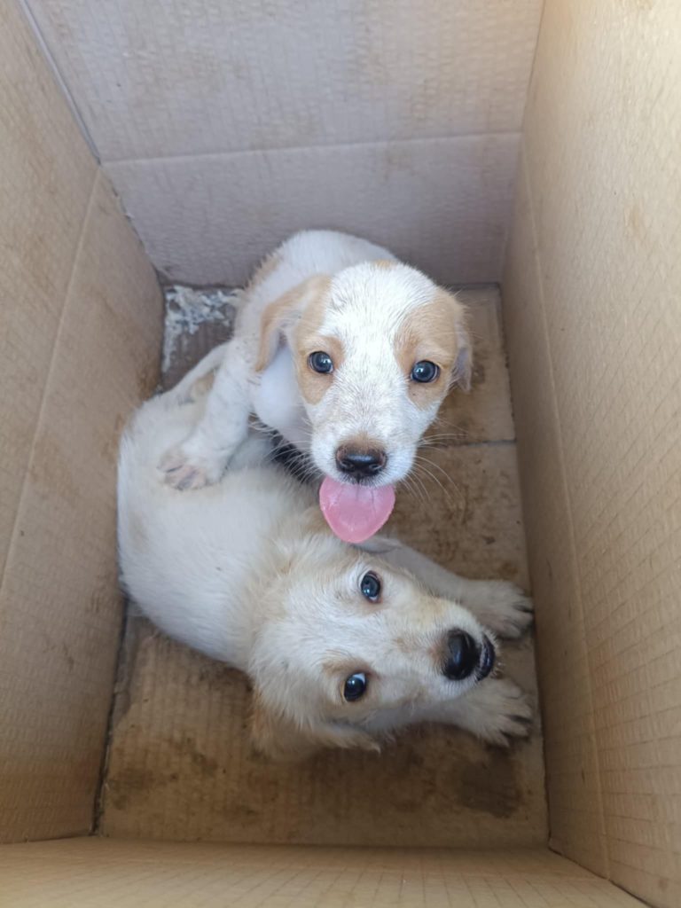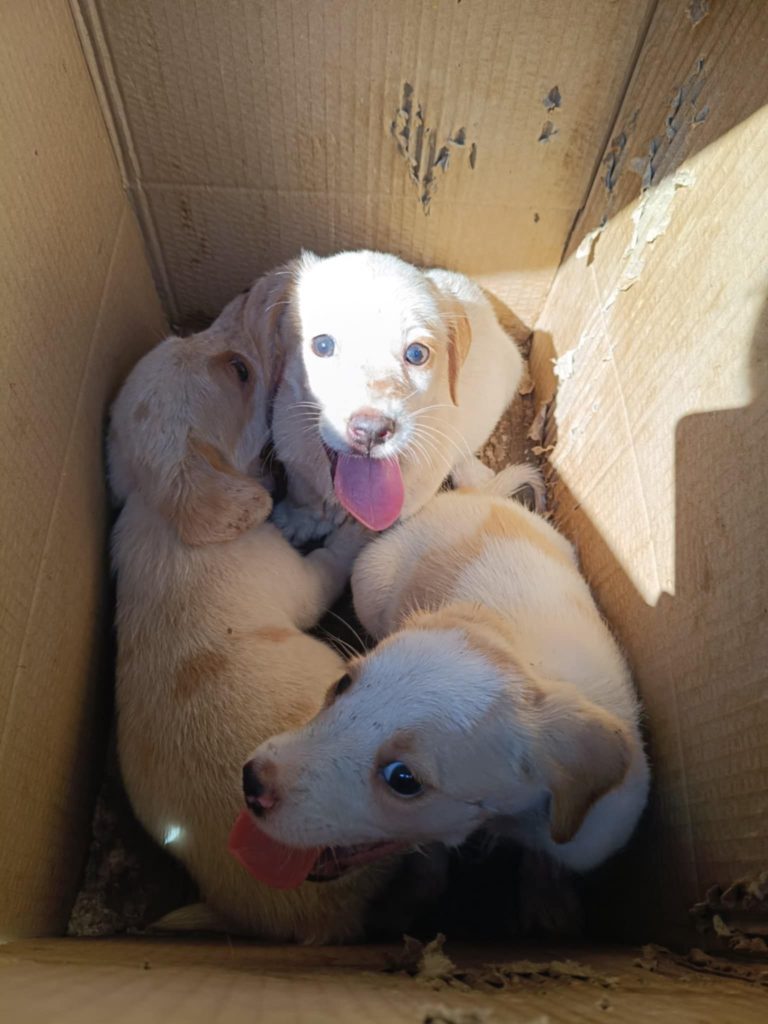 Τα εικονιζόμενα κουτάβια βρέθηκαν παρατημένα σε μία κούτα ανεβαίνοντας προς Αίνο και φιλοξενούνται προσωρινά από εθελοντή. Είναι περίπου 2 μηνών και αναμένεται να γίνουν περίπου 15-25 κιλά. Είναι δύο θηλυκά και τρία αρσενικά. Έχουν εξεταστεί από κτηνίατρο και θα δοθούν αποπαρασιτωμένα, εμβολιασμένα και θα τους γίνει δωρεάν στείρωση όταν φτάσουν στην κατάλληλη ηλικία.
