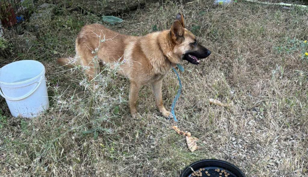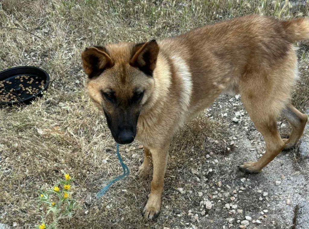 Είναι αρσενικός, σχεδόν 4 ετών και δε φέρει αριθμό ηλεκτρονικής σήμανσης (τσιπ). Φέρει καφέ κολάρο από το οποίο κρέμεται ένα μπλε κορδόνι.